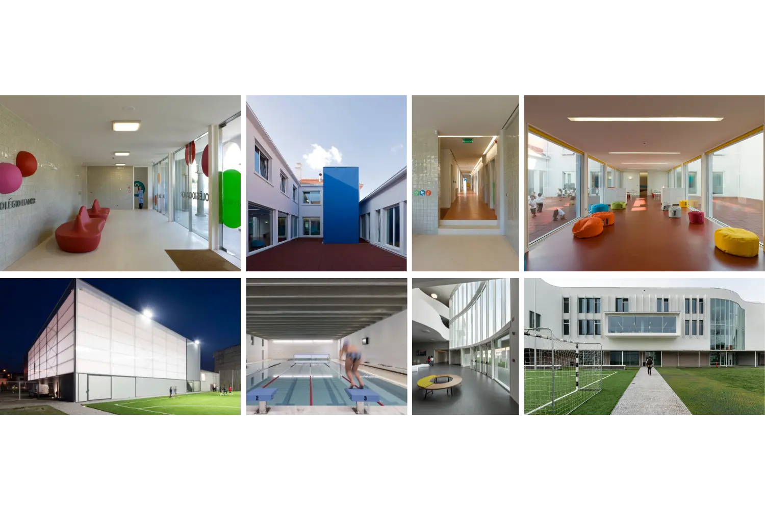 Completamos o conjunto com as instalações desportivas: a piscina, um estúdios de dança, um ginásio e o pavilhão gimnodesportivo, dotado de uma bancada com 300 lugares para acolher a nossa comunidade educativa.